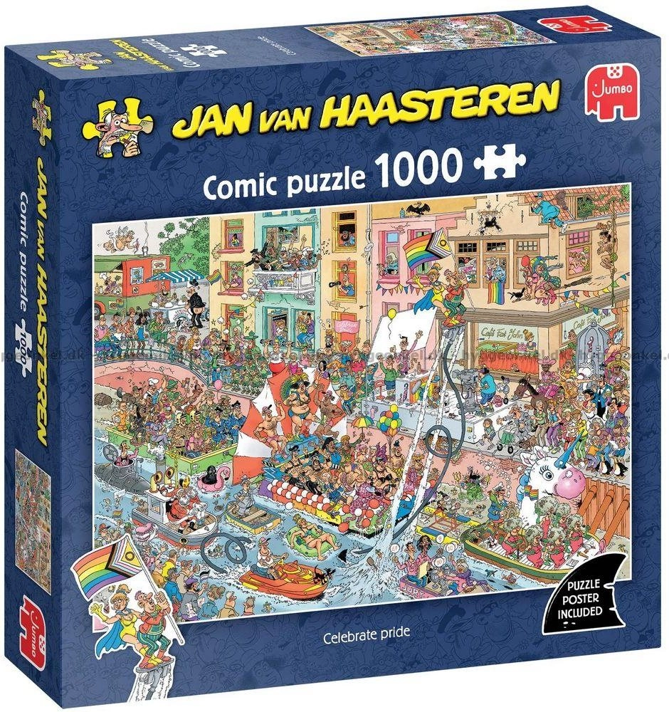 Uživajte v barvitem, podrobnem in duhovitem sestavljanju z ikoničnim avtorjem Janom van Haasterenom. Ta sestavljanka z motivom Praznovanje ponosa ponuja množico skritih šal, tradicionalno morsko pasjo plavut in druge avtorjeve prepoznavne prvine. Idealna zabava za dolge trenutke za vso družino.