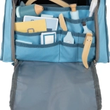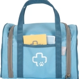 Lahka torba z žepi in zadrgo služi kot boks za zajčka in kot zdravniška torbica. Omogoča pregledno shranjevanje in enostavno prenašanje celotnega kompleta.