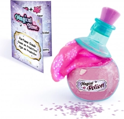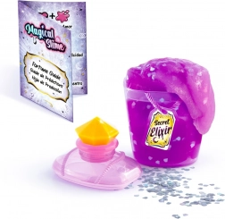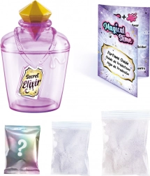 Komplet So Slime magični eliksir otrokom prinaša igrivo alkimijo – v nekaj korakih si zmešajo lastno barvito in bleščečo sluz. V paketu najdete tematsko stekleničko (Secret Elixir, Mystery Potion ali Magical Potion), mešanice praškov, bleščice ali konfete ter jasnega vodiča. Rezultat je mehka, prožna in vizualno privlačna sluz z efektnimi srčki, zvezdicami ali diamantki.
