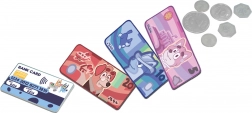 Priložen je komplet kovancev, bankovcev in plačilna kartica, s katerimi lahko otroci preizkusijo plačevanje z gotovino in brezgotovinsko plačevanje.