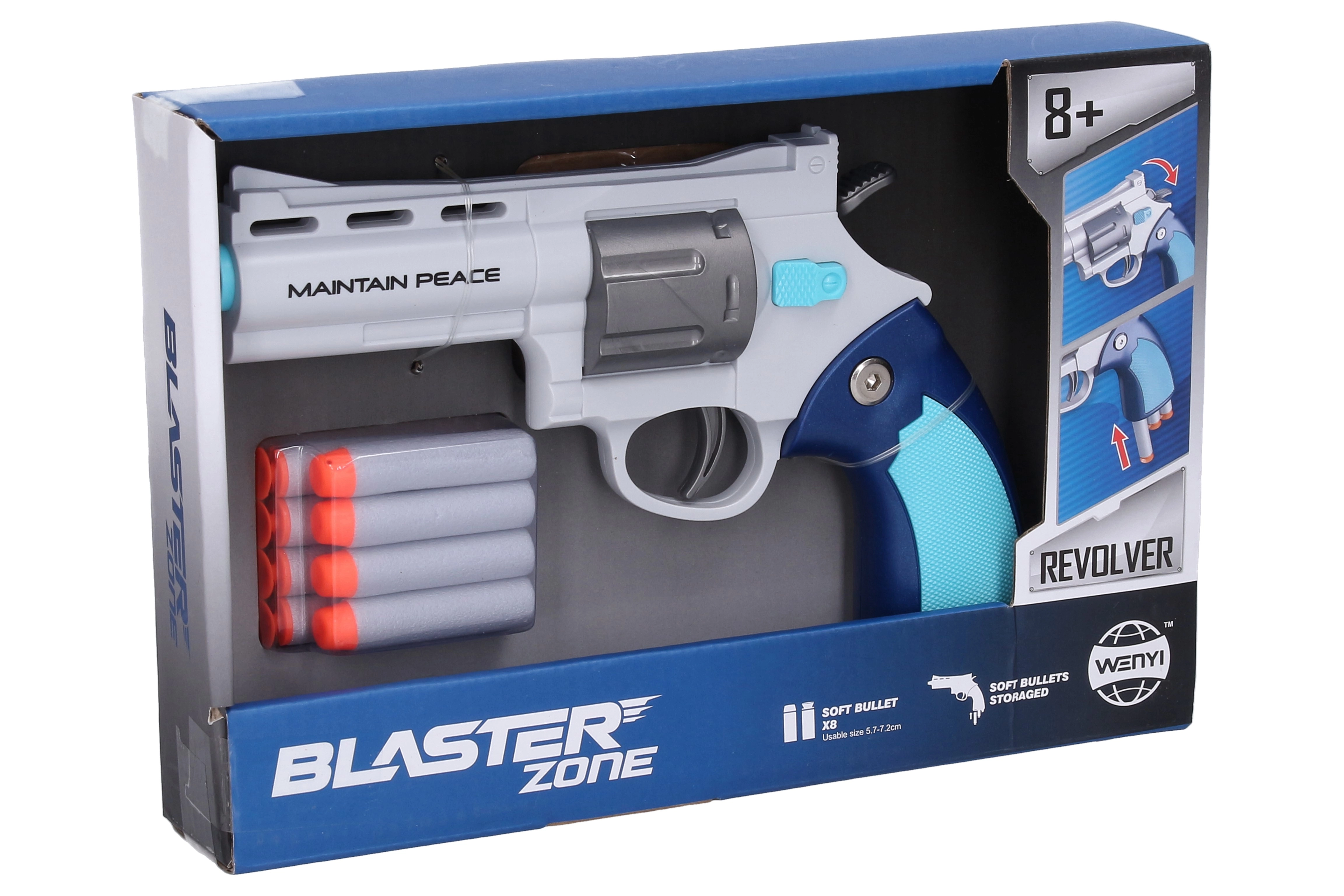 Uživajte v akcijski zabavi z varno igračo, ki spodbuja natančnost in zbranost. Penasti revolver je idealen za uporabo doma in na prostem, dve vrsti nabojev pa omogočata različne igralne scenarije – od hitrega streljanja do prisesanja strelov na gladke površine.