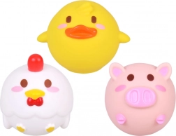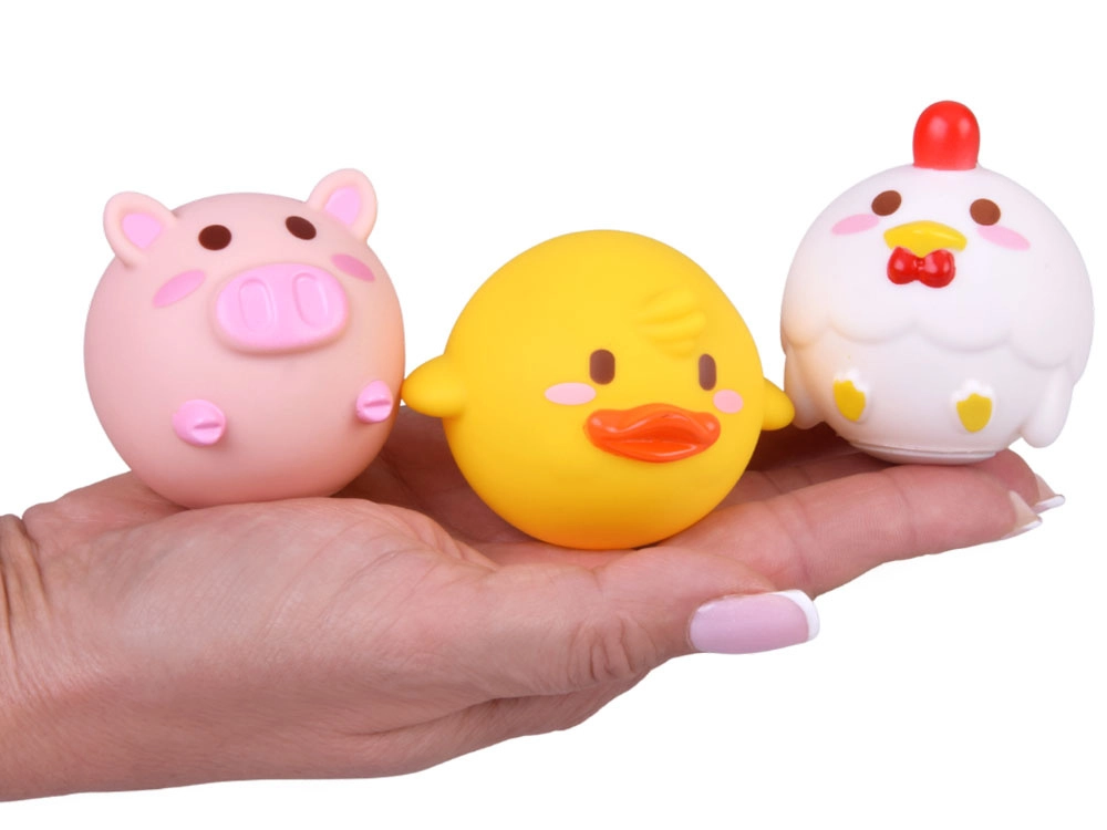 Živalice imajo zaobljeno obliko in nimajo nobene luknjice – voda ne prodre v notranjost, kar zagotavlja boljšo higieno in daljšo življenjsko dobo. Žive barve in prijazni izrazi živalic spodbujajo razvoj čutov ter učenje skozi igro – spoznavanje barv, imen živali ali preprosto štetje.