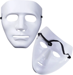 Univerzalna pustna maska iz lahke plastike s priročno elastično gumico za zanesljivo pritrjevanje. Gladka površina je idealna za lastno okraševanje z barvami, bleščicami ali nalepkami. Odlično za pust, Noč čarovnic, gledališče, cosplay in tematske zabave. Na voljo v dveh barvah: beli in rdeči.