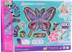 Ta ustvarjalni komplet otrokom prinaša ure zabave in razvijanja spretnosti. Zaradi velike količine nalepk in kroglic lahko ustvarijo izvirne dekoracije, zapestnice ali ogrlice ter okrasijo svoje najljubše predmete. Praktični organizator v obliki metulja poskrbi, da so vsi deli pregledno zbrani na enem mestu.