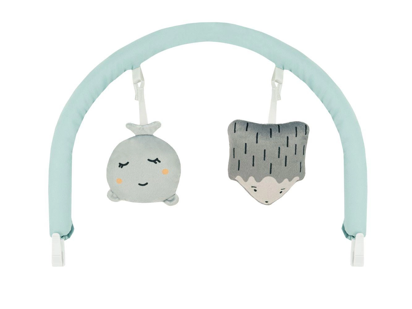 Del kompleta je odstranljiv lok z dvema igračama, ki podpirata razvoj čutov in koordinacije gibov. Prevleko je mogoče zlahka snemiti in oprati, zato je ležalnik vedno higiensko čist. Zahvaljujoč lahki in kompaktni zasnovi ga zlahka prenašate po stanovanju.