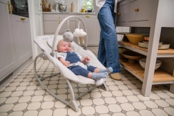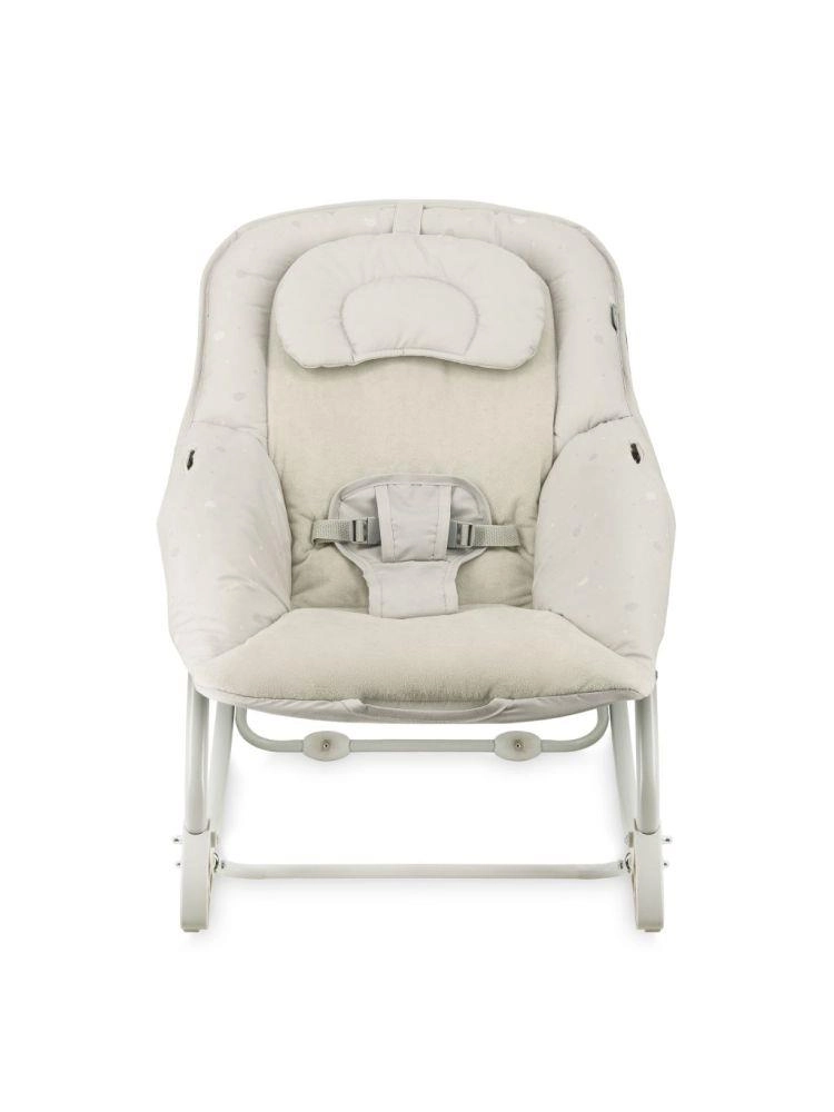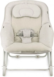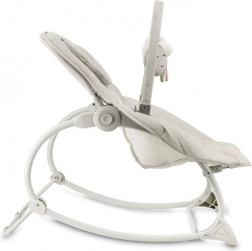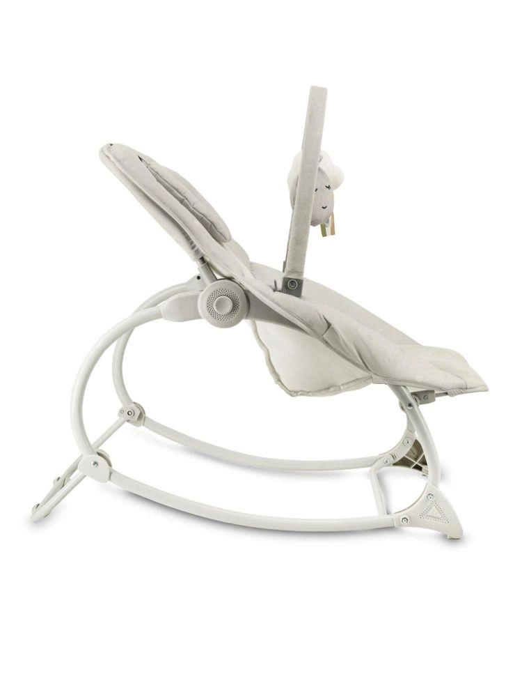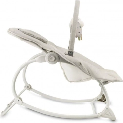 Za varnost skrbita 3-točkovni varnostni pas in širok mednožni trak, stabilen okvir pa omogoča tudi blokado guganja. Praktične snemljive in pralne prevleke olajšajo vzdrževanje. Lok z dvema mehkima igračkama podpira senzorični razvoj in zabava dojenčka, ko potrebujete proste roke.