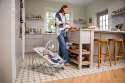 Vgrajen senzorični modul prinaša prijetne melodije in nežne vibracije, ki pomagajo dojenčka hitro umiriti ter podpreti spanec in dobro počutje čez dan.