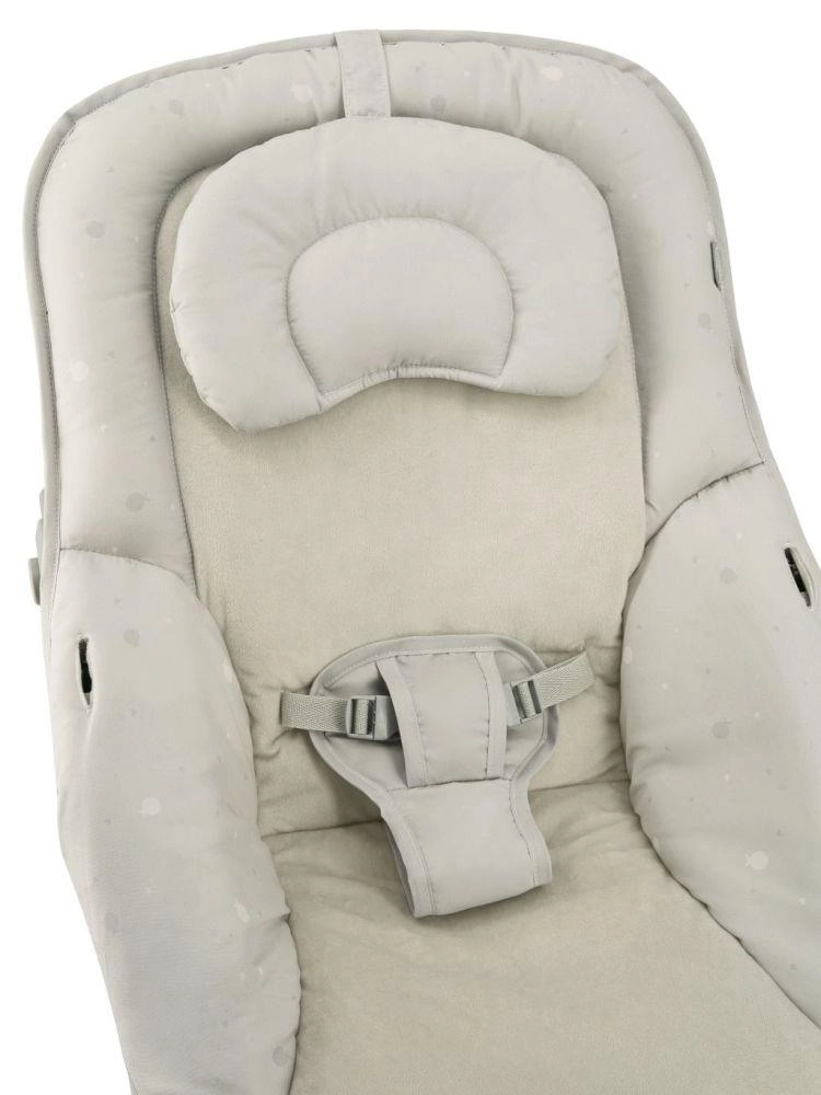 Enostavno nastavljivo naslonjalo v treh korakih zagotovi pravilno pozicijo za počitek, igro in hranjenje. Odstranljiv mehak vzglavnik podpira glavico novorojenčka.