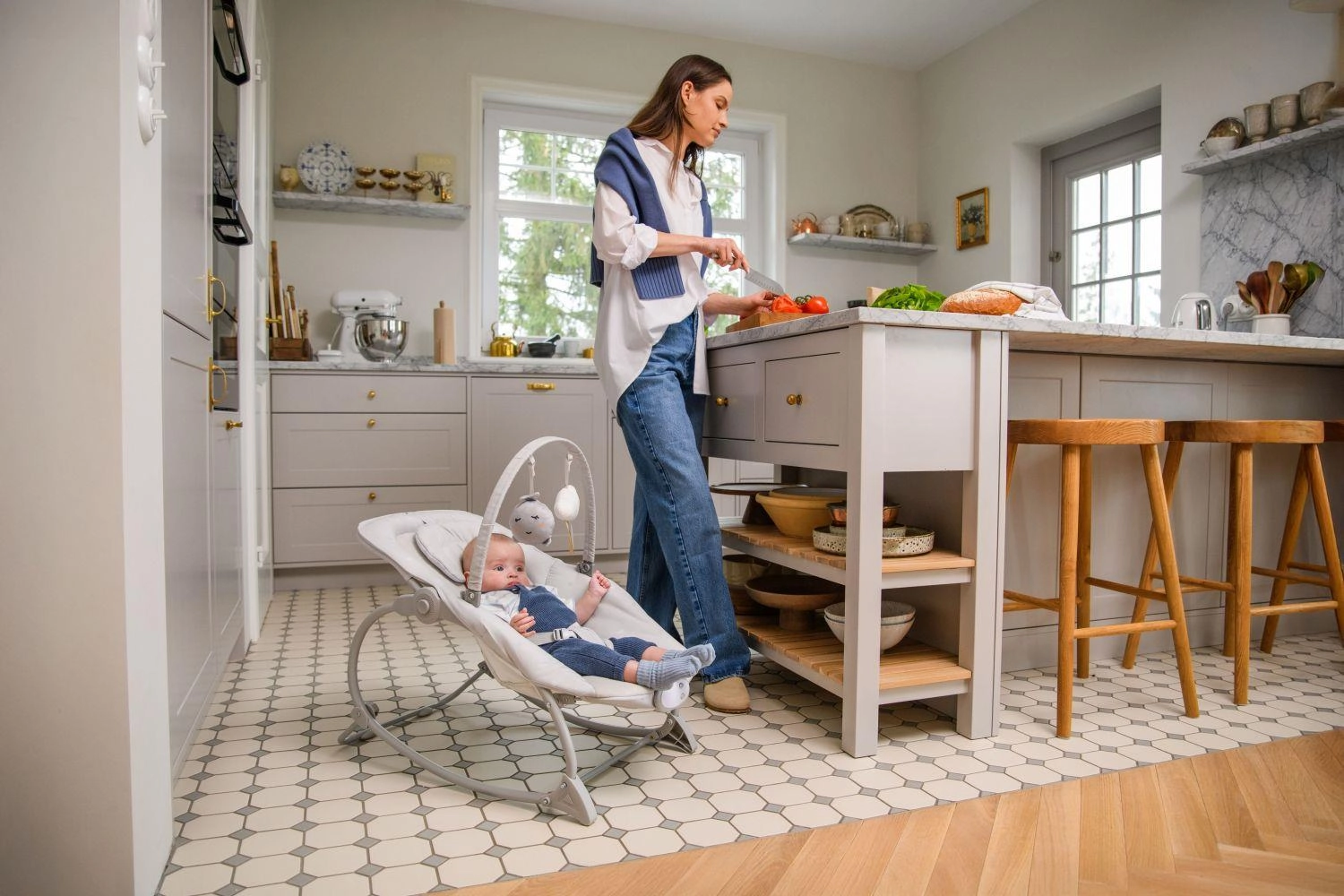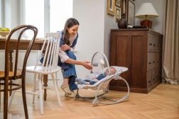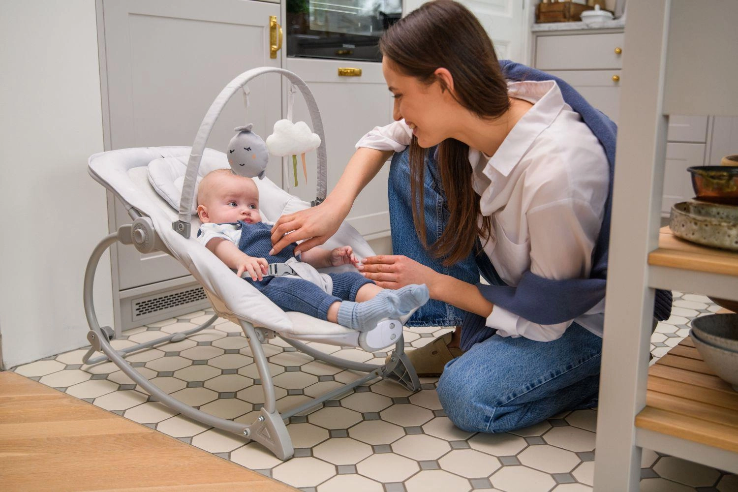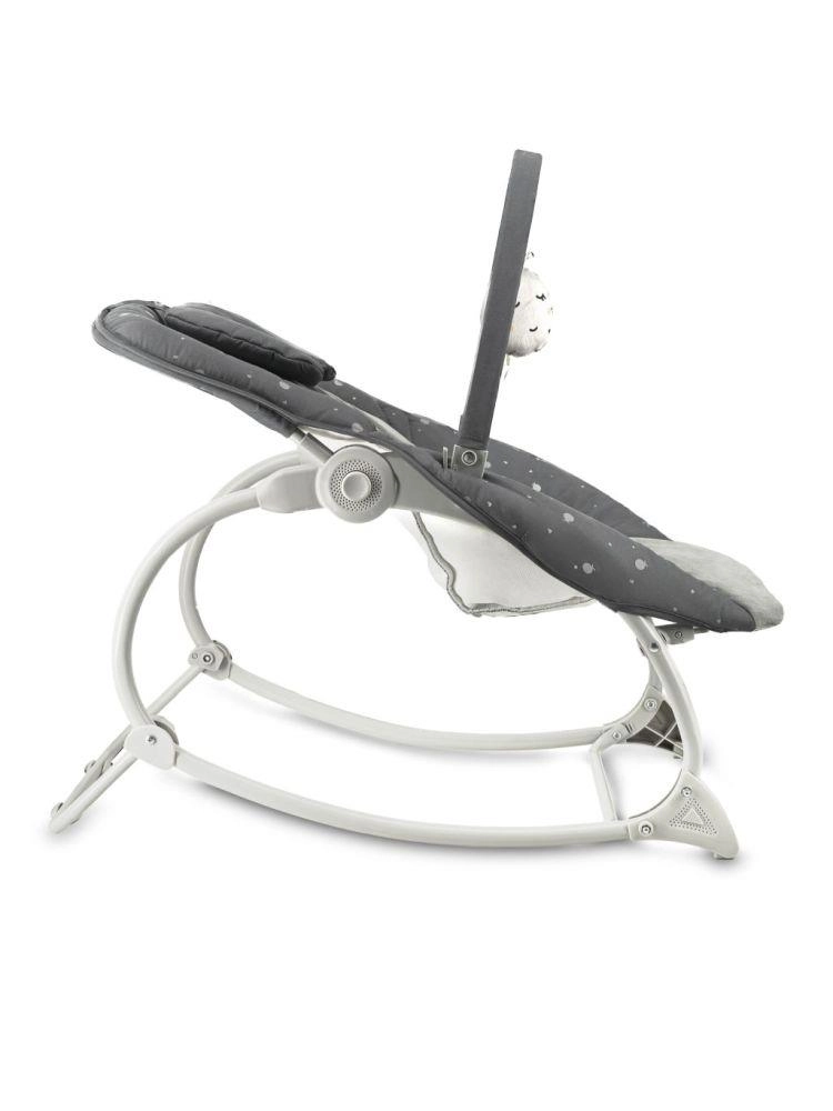 Ležalnik MoMi LAPIS združuje pomirjujoče zibanje z uporabniškim udobjem in varnostjo. Senzorični modul z melodijami in vibracijami pomaga dojenčka umiriti, medtem ko igralni lok z dvema igračama spodbuja čute in razvoj motorike. Zahvaljujoč 3-stopenjskemu nastavljanju naslonjala preprosto prilagodite položaj za sprostitev ali hranjenje.