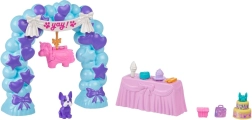 Dve punčki, kužek, miza z dobrotami, darila in dekoracije – vse, kar otroci potrebujejo za ustvarjanje svoje rojstnodnevne zabave.