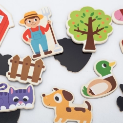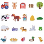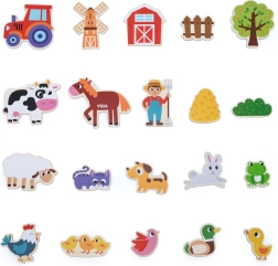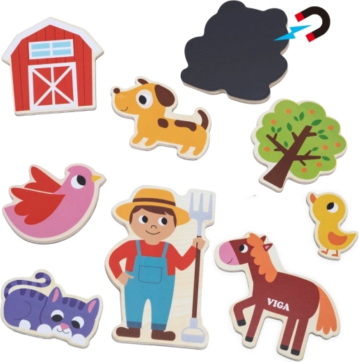 Odkrijte čar podeželja z lesenimi magneti VIGA. Ta set 20 barvitih magnetov z živalmi s kmetije je idealen za hladilnik, magnetno tablo in posebne podloge. Otroci lahko ustvarjajo prizore, pripovedujejo zgodbe ter se naravno učijo prepoznavati domače živali – vse v obliki varne in zabavne igre.