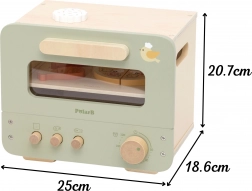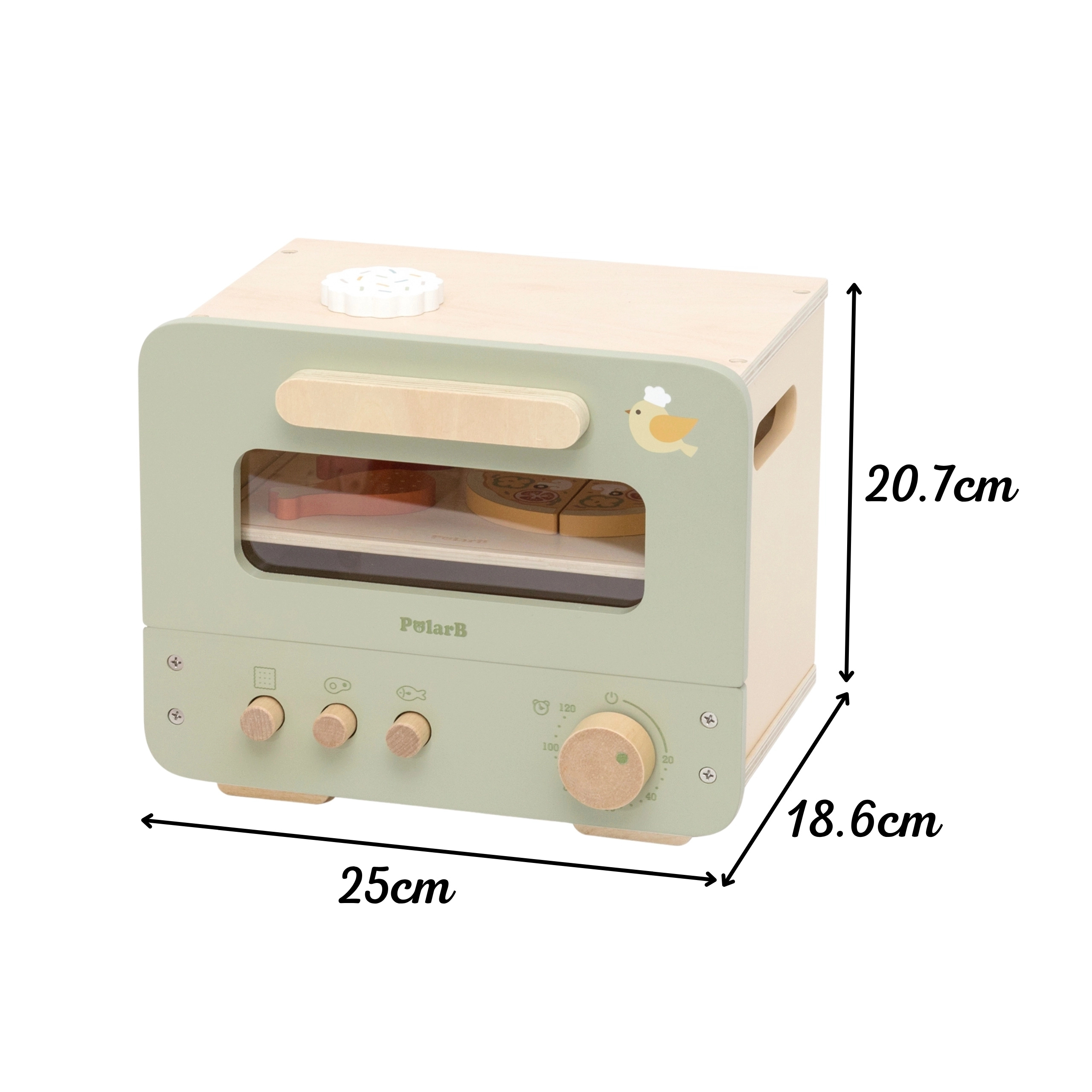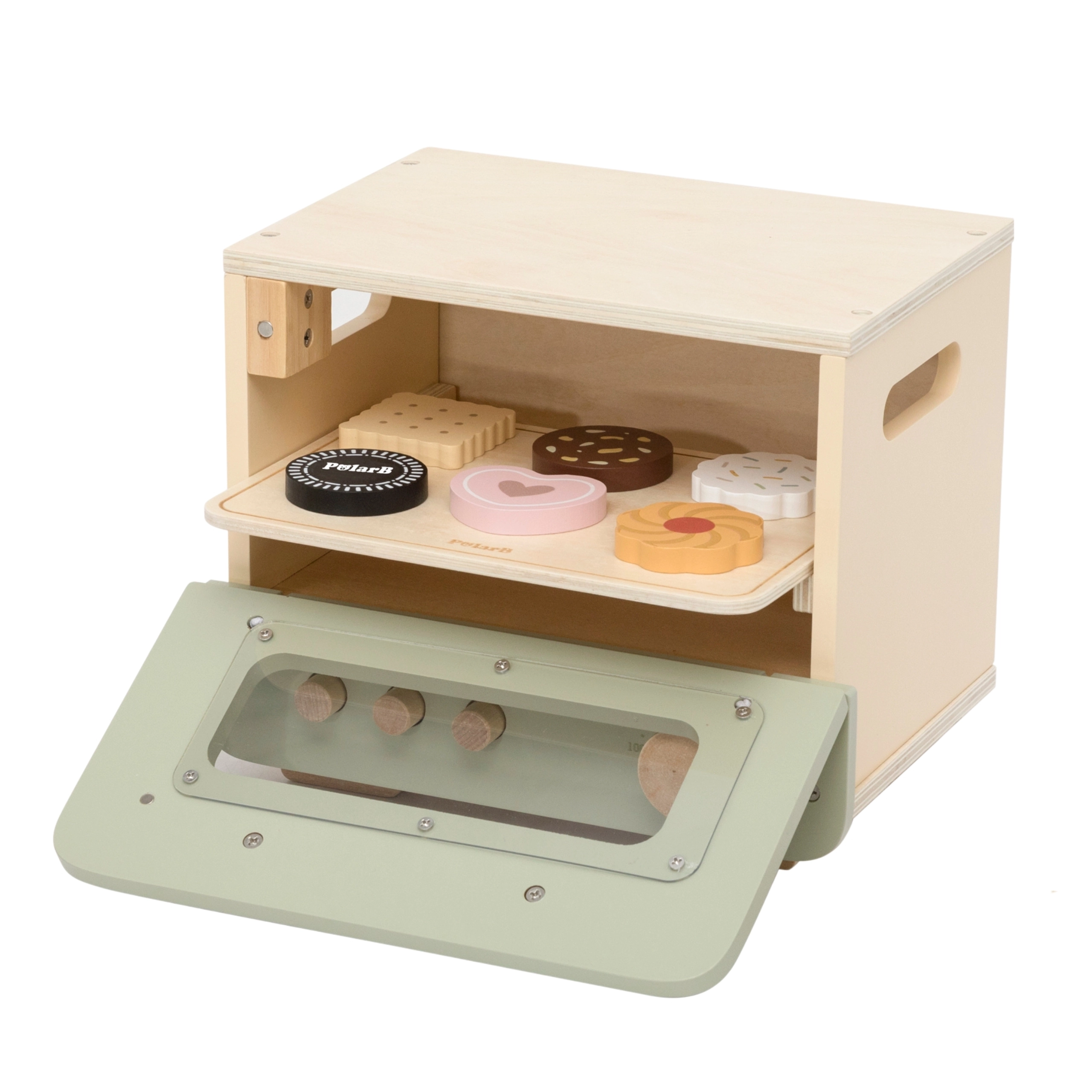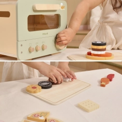 Ta stilska otroška pečica v zeleno-bež izvedbi prinaša otrokom avtentično izkušnjo peke. Prosojno okence, funkcionalni gumbi in odstranljiv pekač vabijo k domiselnemu postrežanju sladkih in slanih dobrot. Otroci lahko režejo in sestavljajo mini pico, pečejo piškote ter urijo spretnost in komunikacijo pri igri vlog.