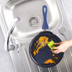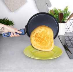 Ročaj z mehko silikonsko površino ostane hladen in je udoben za držanje. Nizek rob olajša nalivanje testa, privzdigovanje in obračanje palačink. Ponev je brez PFOA in PTFE, odporna na čistila in je zaradi indukcijskega dna združljiva z vsemi vrstami kuhalnih plošč.
