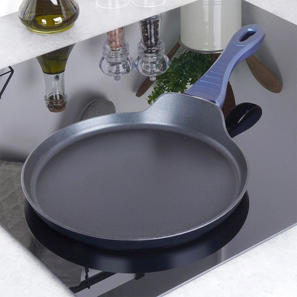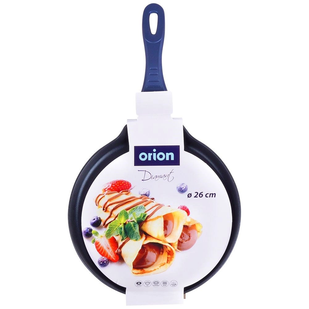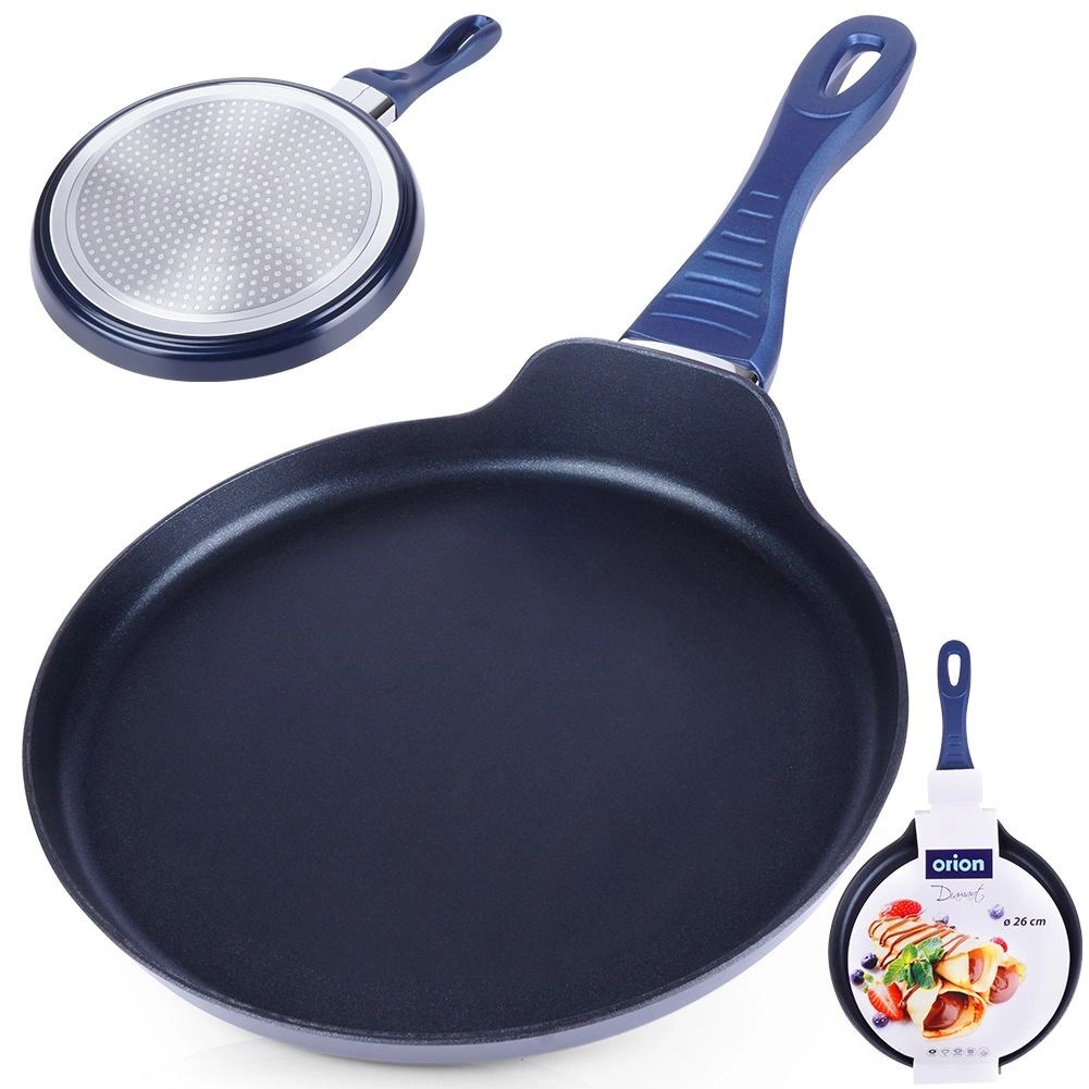 Ta elegantna palačinkarska ponev je zasnovana za popolnoma tanke palačinke, ameriške palačinke in omlete. Diamantna keramična osnova z delci diamanta odlično prevaja toploto in zagotavlja enakomerno pečenje brez prijemanja, zato zadostuje minimalna količina olja. Masiven ulit aluminij odlično akumulira toploto in ohranja stabilno temperaturo po vsej površini.
