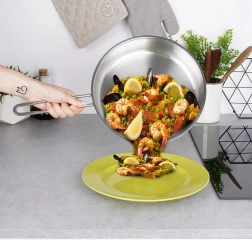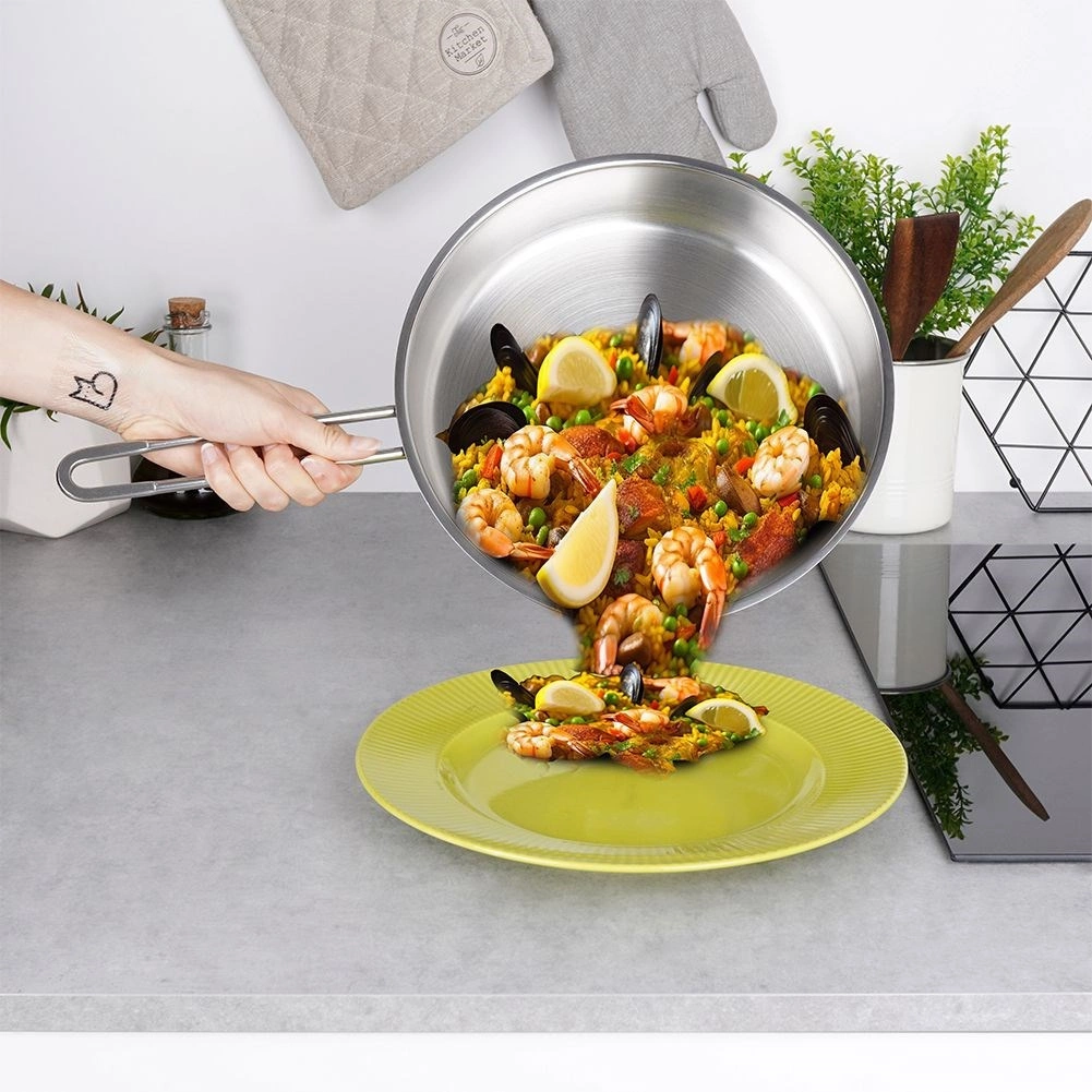 Gladko nerjavno jeklo se zlahka pomiva ročno ali v pomivalnem stroju. Dobro oblikovano telo ponve zmanjšuje oprijemanje ostankov.