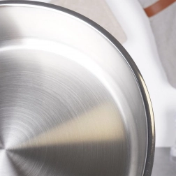 Dno odlično akumulira in enakomerno razporeja toploto, zato kuhate hitreje, bolj varčno in s stalnimi rezultati na vseh vrstah štedilnikov, vključno z indukcijo.