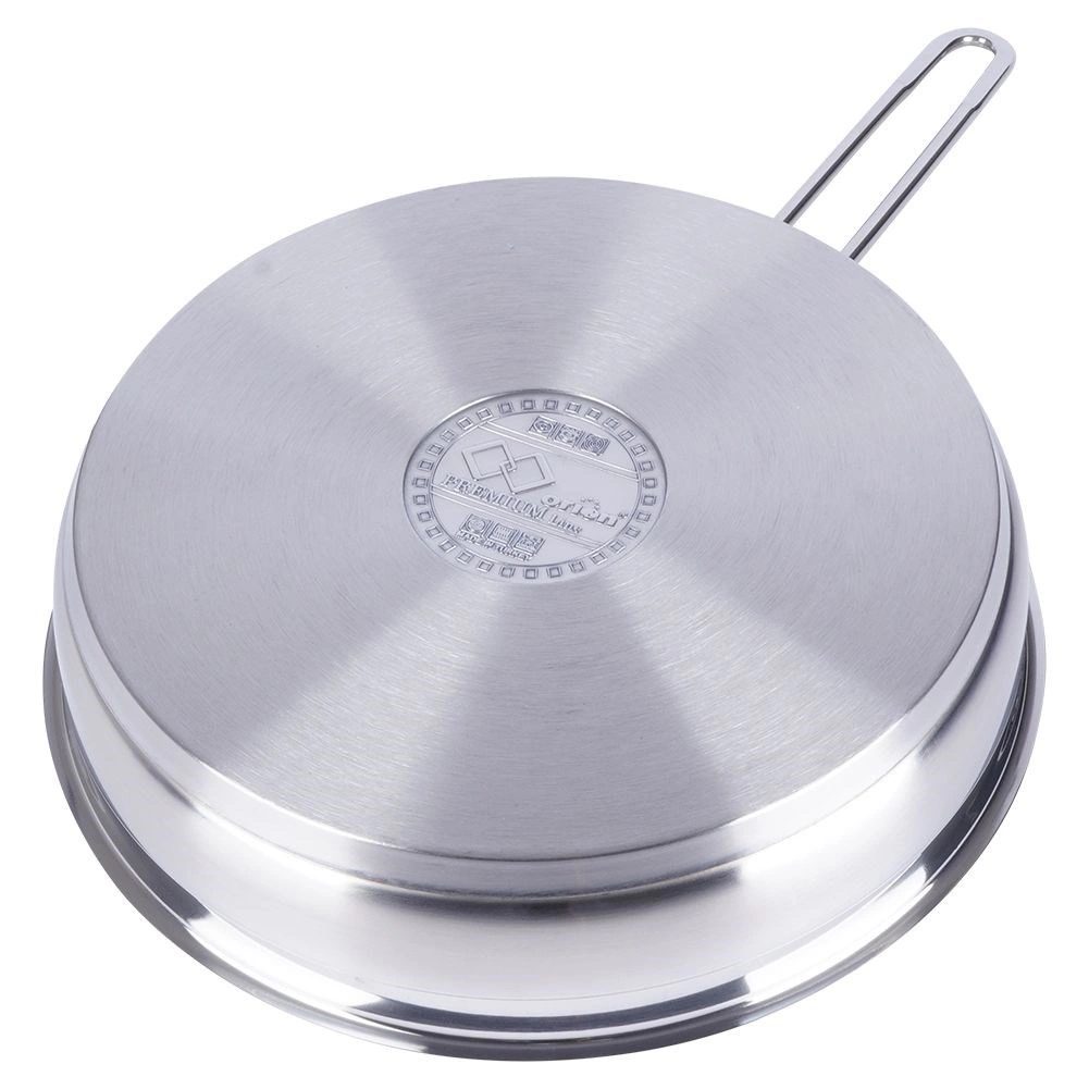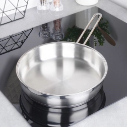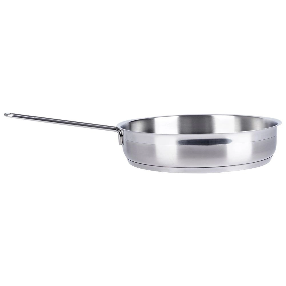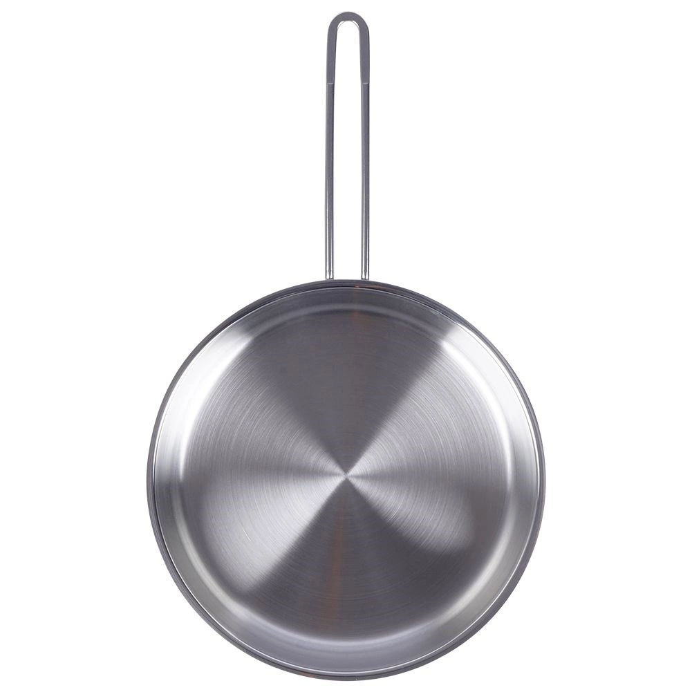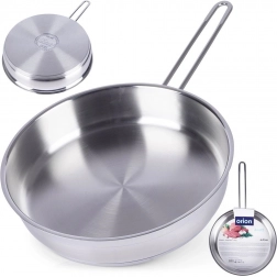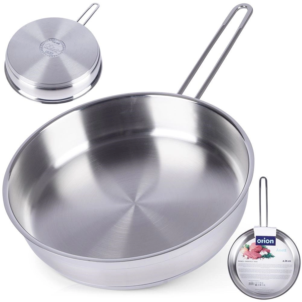 Ta nerjavno jeklena ponev s brezčasnim videzom je odlična izbira za pripravo mesa, zelenjave in palačink. Izdelana je iz kakovostnega nerjavnega jekla z matirano površino in elegantnim sijajnim pasom na zgornjem delu, kar zagotavlja dolgo življenjsko dobo in odpornost proti koroziji. Masivne stene in stabilna konstrukcija omogočajo enakomerno porazdelitev toplote ter zanesljivo delovanje pri pečenju in praženju.