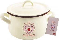 Stilski emajliran lonec v retro dizajnu je odličen za vsakodnevno kuhanje in dušenje. Zahvaljujoč kakovostnemu jeklu z emajlirano površino je odporen, higienski in primeren tudi za alergike. Priložena sta trden pokrov in praktična ročaja za varno prenašanje.