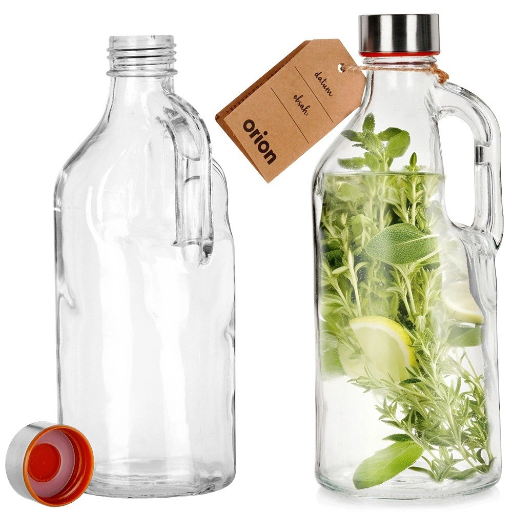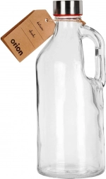 Ta steklena steklenica z ročajem je popolna izbira za vodo, sokove, limonade, smutije in domače sirupe ali likerje. Prosojno steklo omogoča nadzor nad vsebino, kovinski pokrovček s silikonskim tesnilom zanesljivo prepreči izlivanje in ohrani pijače dlje sveže. Zaradi ročaja se steklenica odlično drži in omogoča enostavno nalivanje.