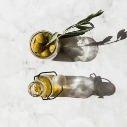 Prosojno steklo lepo poudari olivno olje z zelišči, česnom ali čilijem. Steklenička je odlična tudi za kis in začinjene namoke.
