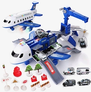 Veliko zložljivo policijsko letalo se spremeni v igralno parkirišče z žerjavom, lučmi in zvoki. V kompletu so 4 kovinska vozila, ki spodbujajo domišljijo in akcijsko igro. Odlično darilo za male ljubitelje policije in tehnike.
