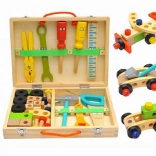 Ta vsestranski set spodbuja fino motoriko, domišljijo in tehnično razmišljanje otrok. Zahvaljujoč trdni leseni izvedbi in lahkemu kovčku lahko mali graditelji vzamejo svoje orodje kamor koli in kadarkoli začnejo ustvarjati.