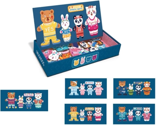 Ta magnetni komplet prinaša zabavno oblačenje in kombiniranje oblačil za prikupno družinico medvedkov. Zahvaljujoč trdnim magnetnim delom lahko otroci zlahka menjajo dele oblačil in preizkušajo neskončne kombinacije. Igra razvija ustvarjalnost, koordinacijo oko–roka ter logično razmišljanje.