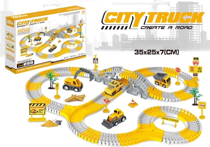 Ustvarite dinamično stezo z delovnimi vozili in prepustite domišljiji prosto pot. Komplet vsebuje 255 elementov, ki jih je mogoče poljubno sestavljati v različne oblike. Segmentni deli steze se zlahka zaskočijo, zato lahko otroci in starši hitro gradijo in preurejajo. Realistični gradbeni avtomobilčki dodajo igri pristnost.