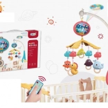 Vrtiljak nad posteljico s projektorjem ustvarja mirno okolje za spanje in igro. Nežne melodije in svetlobni efekti pomagajo dojenčku pri sprostitvi, medtem ko počasi vrteči se viseči elementi spodbujajo razvoj vida in koncentracije. Daljinsko upravljanje vam omogoča vklop funkcij brez motenja otroka.