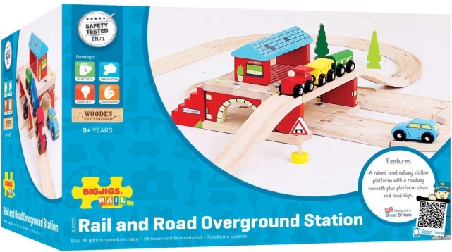 Ta pisana lesena igrača posnema ikonične londonske nadzemne postaje. Vsebuje prepoznavne londonske znake, taxi postajališče, blagajno in stopnice na peron, kar to igračo naredi odličen dodatek k vsaki leseni železniški kompoziciji. Velika Postaja Nad Cesto omogoča udeležencem cestnega prometa vožnjo pod postajo, medtem ko vlak prihaja in odhaja. Povezuje železniško progo in cestišče, kar otrokom nudi nešteto možnosti za interakcijo in igro.