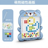 Ta magnetna tablica v obliki modrega medvedka je odlična izbira za male umetnike. Z magnetnim peresom otroci rišejo in brišejo brez potrebe po papirju ali barvicah, kar prihrani prostor in denar. Idealna za potovanja, v avto in za doma.