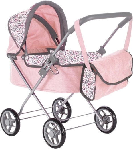 Stajliš globok voziček za punčke v romantičnem vzorcu Pink Flowers bo razveselil vsako malo mamico. Ponuja stabilno konstrukcijo, udobno globoko košaro in praktično torbo za dodatke. Zaradi kompaktnih mer je enostaven za upravljanje doma in na prostem ter spodbuja ustvarjalno igro, skrb za punčke in razvoj domišljije.
