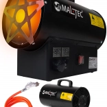 Zmogljiv plinski grelnik MalTec z močjo 25 kW hitro ogreje delavnice, garaže ali gradbišča. Ponuja elektronski vžig, termostat s tipalom temperature, uravnavanje temperature in zaščito pred pregrevanjem. Del paketa je 1,5 m cev z regulatorjem za takojšnjo uporabo.