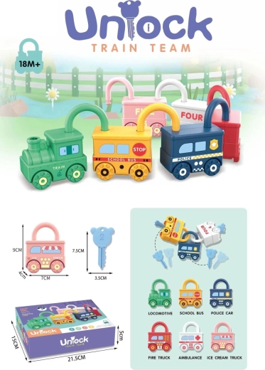 Ta logična senzorična igra s ključki in ključavnicami prinaša otrokom veselje do odkrivanja. Naloga je pravilno prirediti ključek ustrezni ključavnici na prisrčnih avtomobilčkih. Zaradi preprostega principa in izrazitih barv je igra primerna že za malčke ter spodbuja razvoj prepoznavanja oblik, barv in povezav.