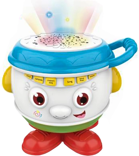Ta interaktivni glasbeni boben prinaša otrokom veselje ob glasbi in svetlobnih učinkih. Po aktivaciji se prižgejo LED lučke, zasliši se vesel smeh in zaigra glasbena spremljava. Zaradi projektorja ustvari čarobno vzdušje, ki spodbuja domišljijo ter naravno razvija čute.