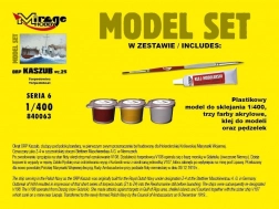 Sestavite lahko svoj model poljskega torpedoborca ORP Kaszub iz leta 1935 s tem podrobno izdelanim plastičnim modelom v merilu 1:400. Set vsebuje plastični model za lepljenje, tri akrilne barve, lepilo in čopič.