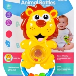 Igriva ropotuljica levček je idealna prva interaktivna igrača za najmlajše. Ob premikanju obročka sproži melodije, zvoke in otroški smeh, hkrati pa začne utripati rdeča lučka, ki spodbuja vizualno zaznavanje. Zaradi kompaktnih mer jo zlahka držijo tudi majhne ročice, primerna je za doma in na poti.