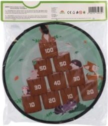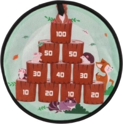 Dvostranska tarča na ježka je zasnovana tako, da prinaša zabavo in učenje v otroško igro. Ena stran tarče je polna živih barv in številk; idealna za tekmovanja v metanju in izboljšanje računskih sposobnosti. Druga stran ponuja temo gozda z živalmi, kar dodaja zabavni pripovedni element.