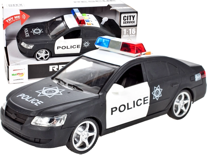 Vstopite v svet policijskih posredovanj s podrobno izdelanim modelom policijskega avtomobila v merilu 1:16. Igra je zahvaljujoč več realističnim zvočnim učinkom še zabavnejša – od hupe, preko sirene, do zvoka zaklepanja in vzvratne vožnje. Idealno za domačo igro ali kot dodatek k zbirki.