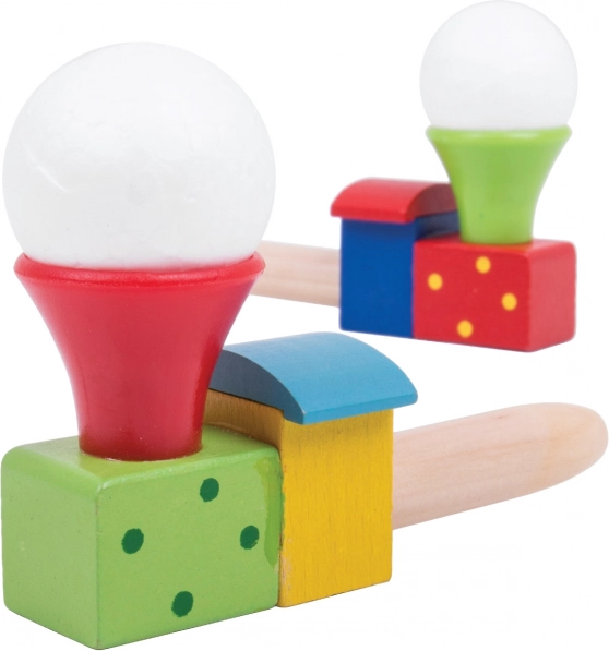 Gladki leseni deli v živih barvah odlično sedejo v majhno roko. Materiali so odgovorno pridobljeni in izpolnjujejo varnostne standarde.