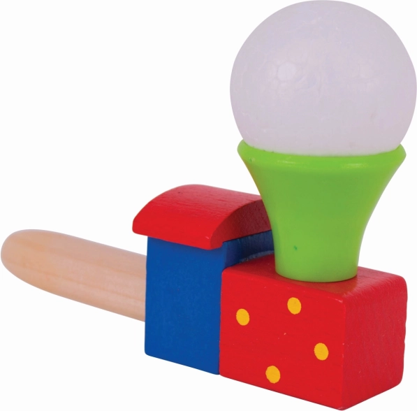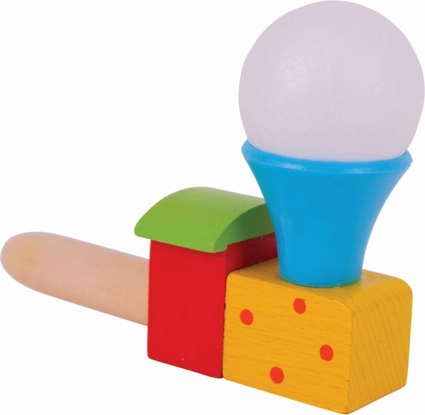 Ta pisana lesena lokomotiva z balončkom spremeni navaden pih v mali čudež. Otroci vadijo dihanje in nadzor nad dihom, opazujejo, kako se beli kosek dviga nad dimnikom, ter tako razvijajo koordinacijo in potrpežljivost. Idealno za kratke igrive premore ali daljšo osredotočeno zabavo.
