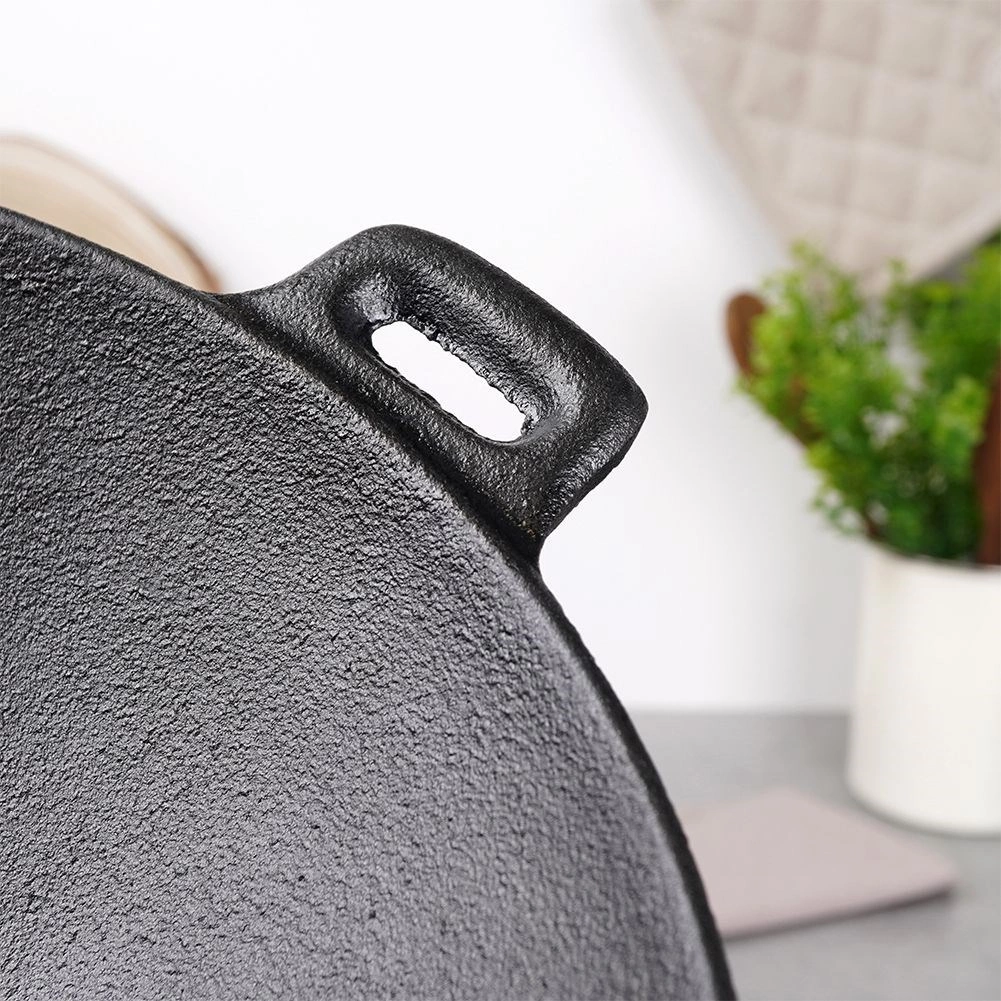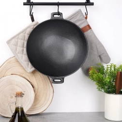 Odkrijte moč tradicionalne litine v sodobni kuhinji. Ta globoka litinasta vok ponev (višina približno 8 cm) je ustvarjena za hitro azijsko pripravo, temeljito domače pečenje in zapečene jedi. Litina ohranja stabilno visoko temperaturo, kar je ključno za enakomerno zapečenost in intenziven okus.