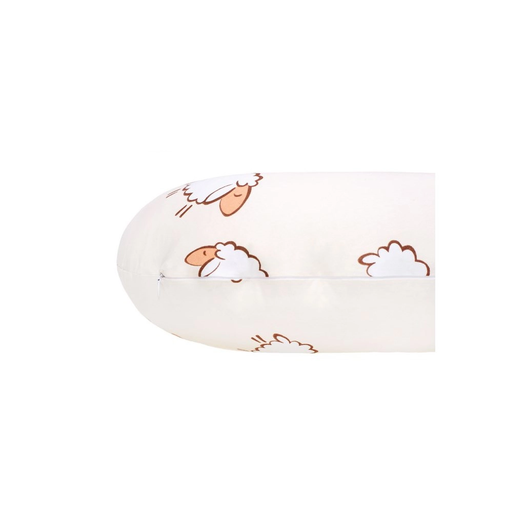 Praktična zlahka snemljiva prevleka iz 100% bombaža je pralna, zato blazina ostane vedno sveža in higienična. Polnitev iz 100% poliestra ohranja blazino zračno, lahko in oblikovno stabilno. Prisrčen motiv ovčk v nevtralni bež barvi se odlično poda k vsakemu interierju.