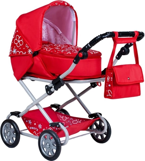 Stajliš otroški voziček za punčke 2v1 NEW BABY Monika v rdeči barvi bo razveselil vsako malo mamico. Ponuja globoko in športno različico, lahko in odporno kovinsko konstrukcijo, nastavljiv ročaj ter bogato opremo – torbico za drobnarije, prenosno torbo za punčko in velik nakupovalni koš. Seveda ima varovalo proti samodejnemu zlaganju in klasično vzmetenje za udobno vožnjo.