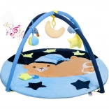 Igralna podloga PlayTo speči medvedek v modri barvi je idealna za vsakodnevno igro in počitek. Zaradi mehkega materiala je prijetna na dotik, nudi oporo pri ležanju na trebuščku in hrbtu ter podpira naraven razvoj gibanja. V vgrajenem mesečku je skrit glasbeni modul, ki ob pritisku predvaja melodije in spodbuja sluh.