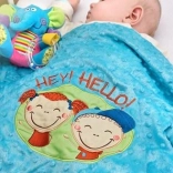 Odeja Sensillo Hey Hello je odlična izbira za vsakodnevno uporabo v posteljici, vozičku in avtosedežu. Zaradi prijetne kombinacije pliša in velurja je zelo mehka na dotik ter dojenčku nudi udobno toplino skozi vse leto. Material 100 % poliester je barvno obstojen, ne pušča barve in je primeren tudi za občutljivo otroško kožo.