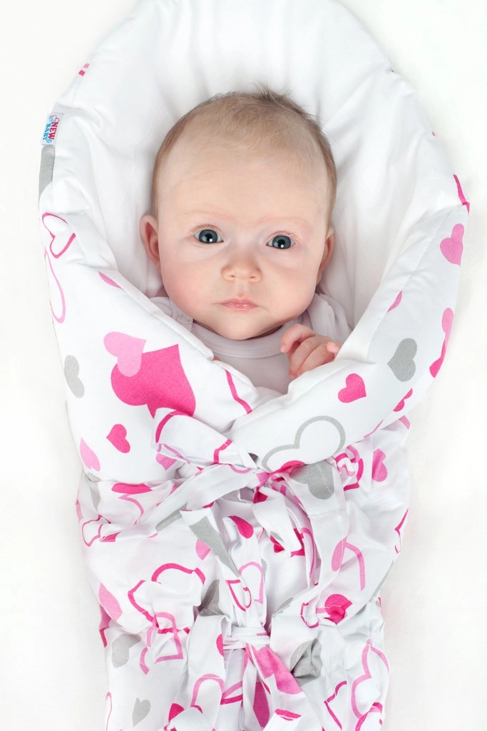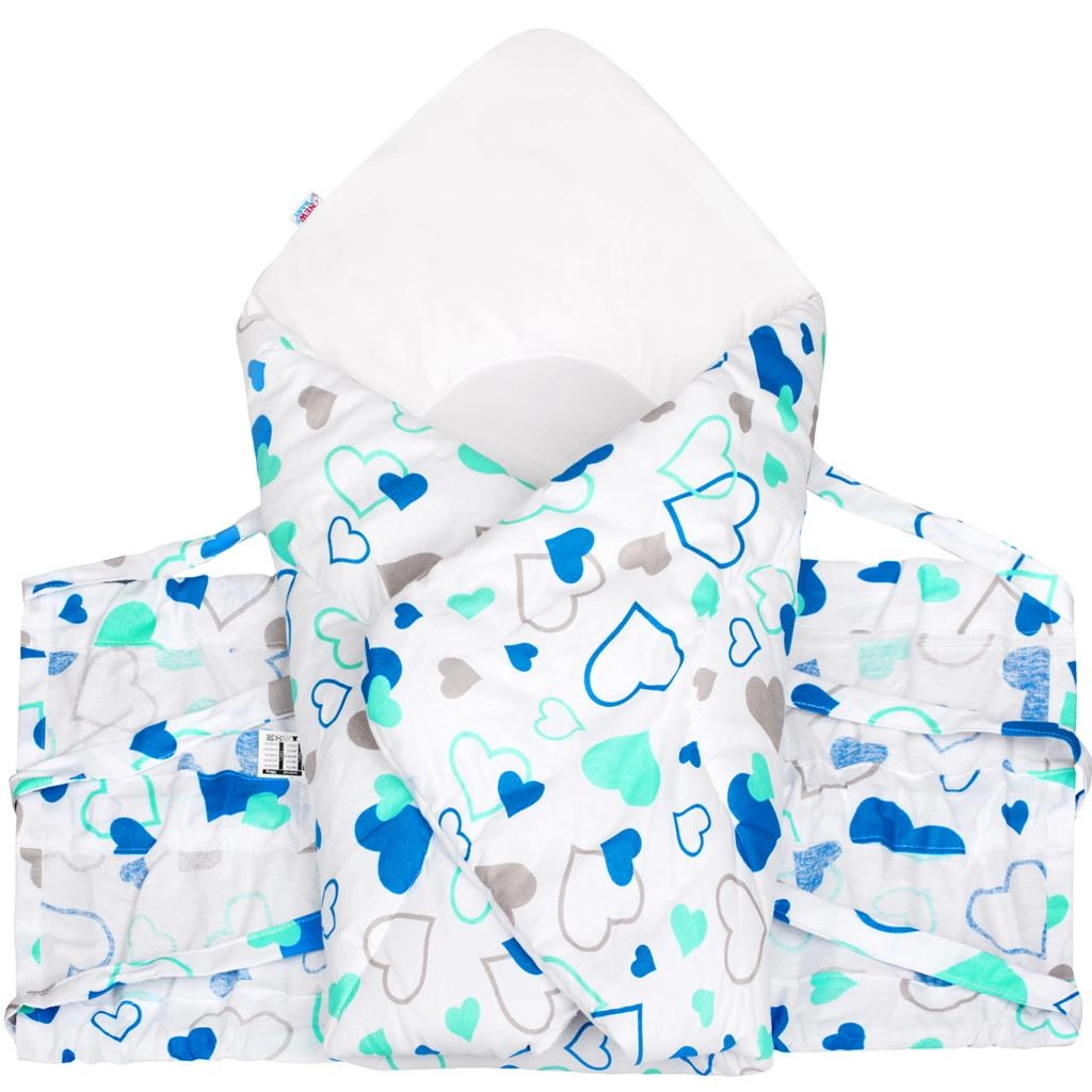 Povijalna odeja New Baby z modrimi srčki je odlična izbira za prve tedne dojenčkovega življenja. Zaradi mehkega oblazinjenja in kapuce nudi prijetno toploto in spodbuja občutek varnosti. Praktično zavezovanje v treh vrstah omogoča prilagoditev povijanja potrebam otroka.