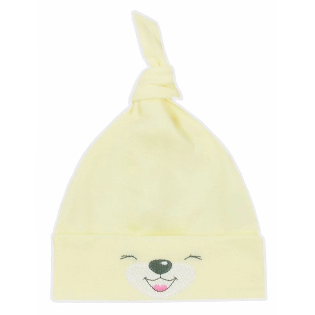 Ljubka dojenčkova kapica iz 100% bombaža za največje udobje malčka. Ima mehek, neutesnjujoč rob, vozlič na vrhu in potisk z nasmejanimi obrazki. Idealna za občutljivo kožo zahvaljujoč nežnemu in zračnemu materialu.