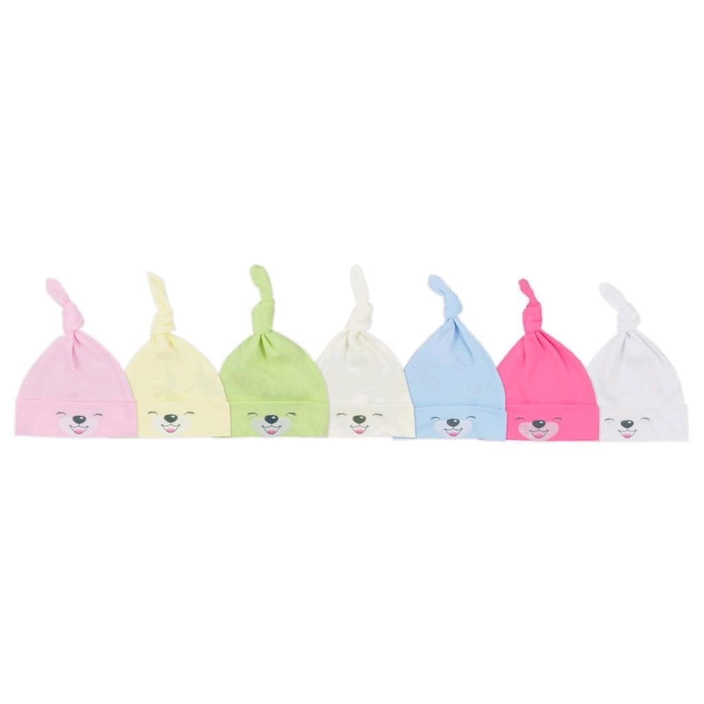 Ljubka rumena dojenčkova kapica iz 100% bombaža z mehkim, neutesnjujočim robom in okrasnim vozličem na vrhu. Prijeten, zračen material je nežen do občutljive dojenčkove kože, vzorec z nasmejanimi motivi pa doda čar vsakemu outfitu.