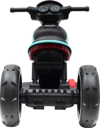 Male dirkače bodo navdušile LED luči (utripanje spredaj in zadaj) ter možnost predvajanja glasbe prek USB ali MP3. Zahvaljujoč preprostemu preklapljanju smeri je vožnja naprej in nazaj stvar enega gumba. Z enim polnjenjem lahko motor vozi do 1–2 uri, polnjenje traja približno 10–12 ur.